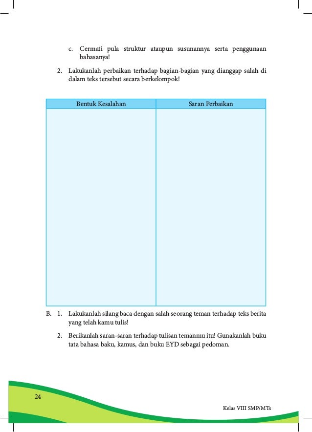Lakukanlah Silang Baca Dengan Salah Seorang Teman Terhadap Teks Berikut Yang Telah Kamu Tulis - Buku Siswa Mata Pelajaran Bahasa Indonesia Berbasis K 13 Kelas Viii : Lakukanlah silang baca dengan salah seorang teman terhadap teks berikut yang telah kamu tulis.