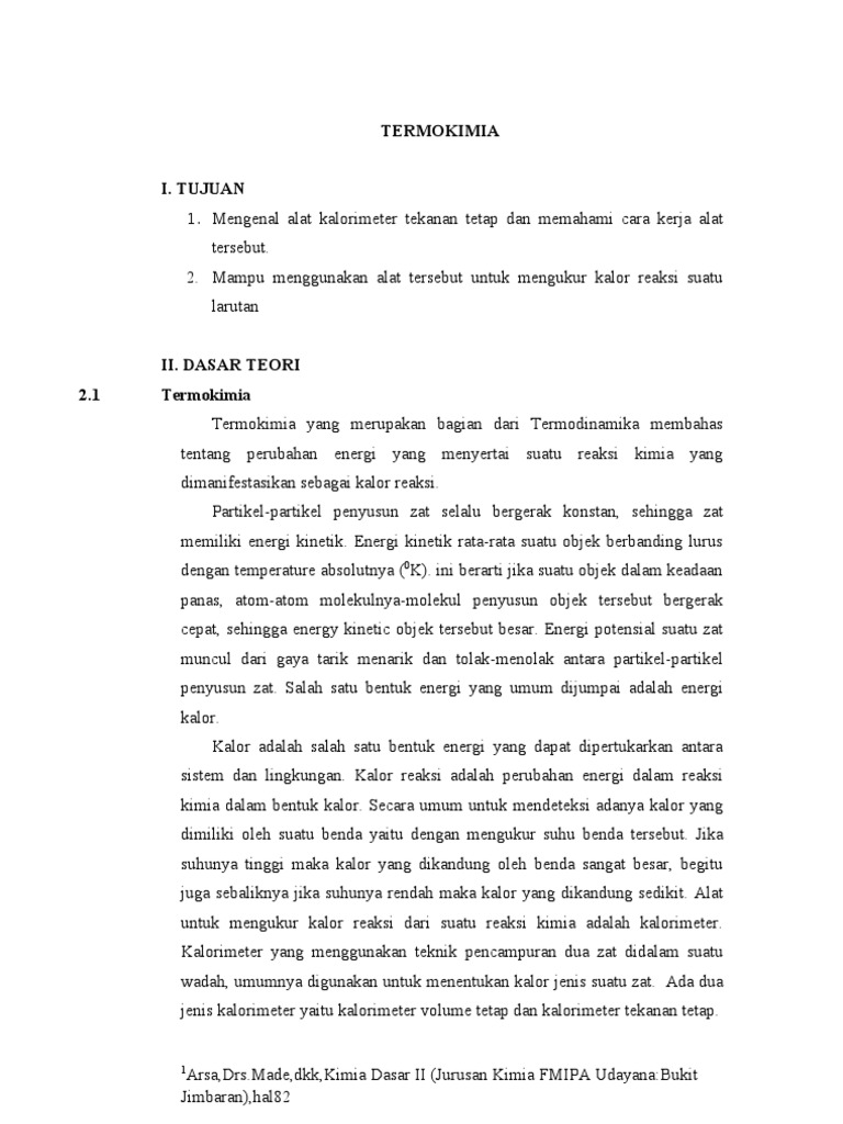 Termokimia laporan praktikum kimia dasar ii. Ni made susita pratiwi 10005005 jurusan kimia fakultas matematika dan ilmu pengetahuan alam universitas udayana bukit jimbaran 2011 1 arsa,drs.made,dkk,kimia dasar ii (jurusan kimia fmipa udayana:bukit. 17 0 9 termokimia kalor q. Laporan praktikum termokimia kelas xi 08 oct, 2016 post a comment bab i. Semoga artikel yang saya berikan ini dapat bemanfaat bagi kita teman teman yang lagi kebingungan mencari landasan teori.